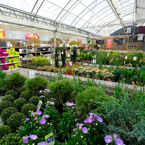 Sie finden hier ein umfangreiches Garten-Sortiment, wie eine breite Auswahl an Bäumen, Sträuchern, Stauden, Gefäßen, ... - 2500 m² Glashaus