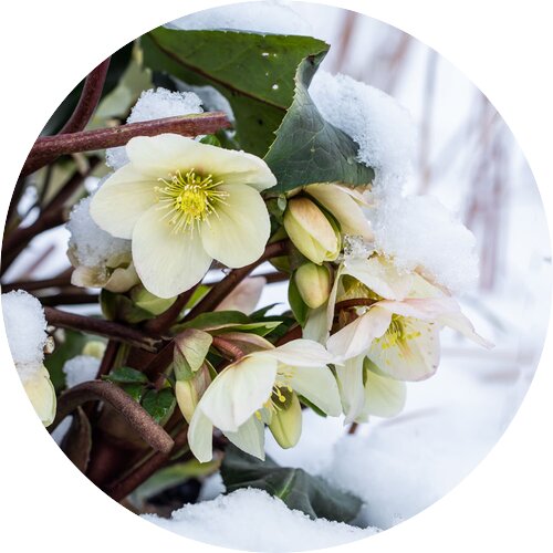 Eine der beeindruckendsten Eigenschaften von Helleborus ist ihre Fähigkeit, mit Kälte umzugehen. Bei Frost ziehen sich die Blätter zusammen, um die empfindlicheren Pflanzenteile zu schützen.