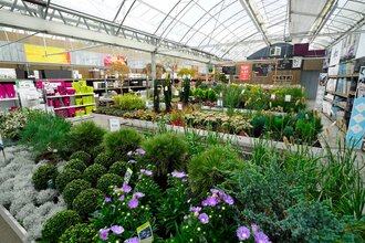 ein umfangreiches Sortiment an Pflanzen, Gefäßen und Gartenzubehör sowohl für den Garten-, die