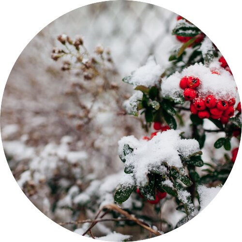Texturen und Kontraste: Die Kombination von immergrünen Blättern, farbigen Stämmen, strukturierten Silhouetten und ggf. Beeren erzeugt visuelles Interesse.