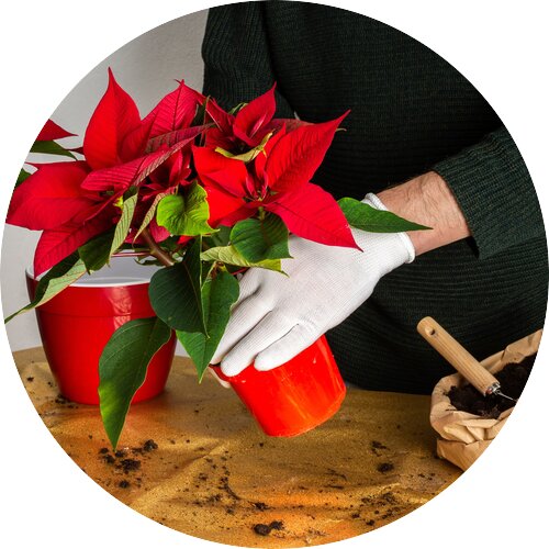 - Pflege: Der Weihnachtsstern mag gleichmäßig feuchte Erde, aber keine Staunässe. Tauche den Topf alle 1–2 Wochen kurz in Wasser, solange keine Luftblasen mehr auftauchen und lass ihn gut abtropfen. Er reagiert empfindlich auf plötzliche Temperaturwechsel – schütze ihn daher vor Kälte beim Transport. Auch kalte Zugluft (bspw. auf der Fensterbank) mag der Weihnachtsstern gar nicht! Alles zum Thema Weihnachtsstern-Pflege gibt's hier zum weiterlesen!