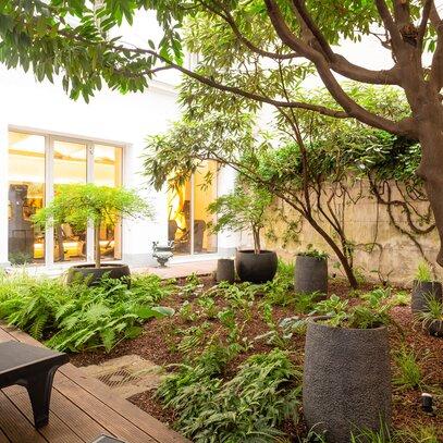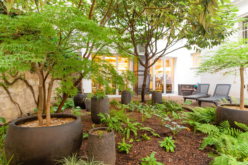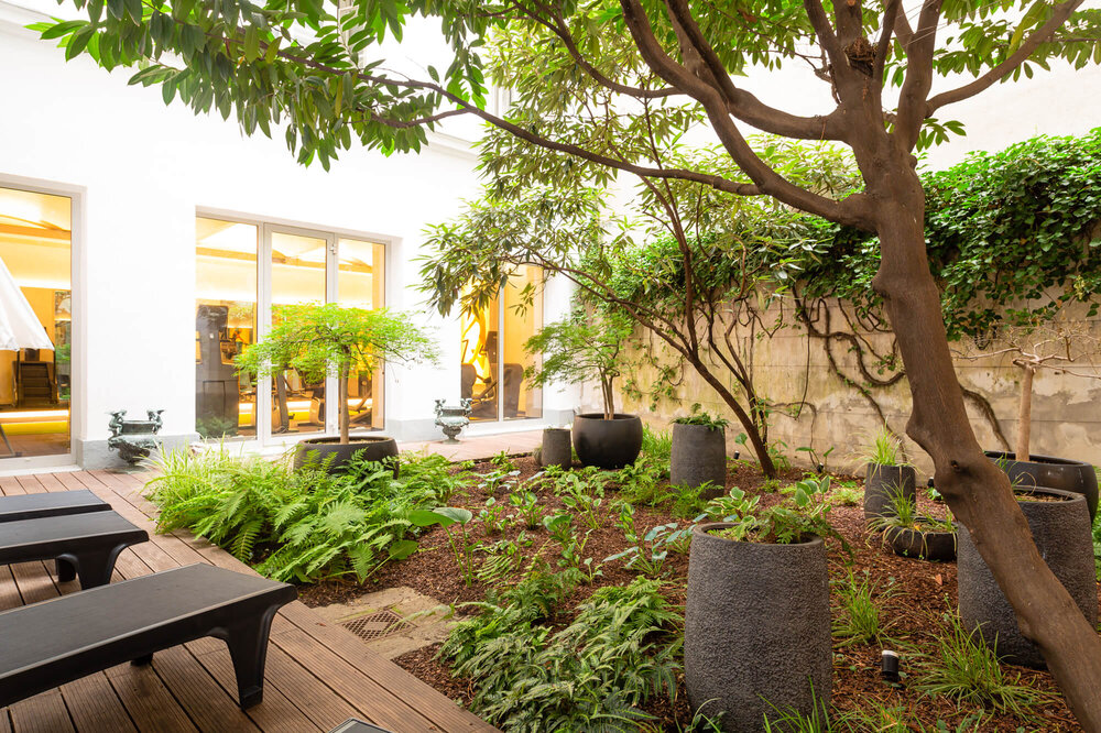 Wir durften den Innenhof eines europaweit einzigartigen Fitnessclubs im ersten Bezirk in Wien neu gestalten. Hier sollen die Gäste des exklusiven Fitnessanbieters mitten in der Innenstadt in einer grünen Oase entspannen.
