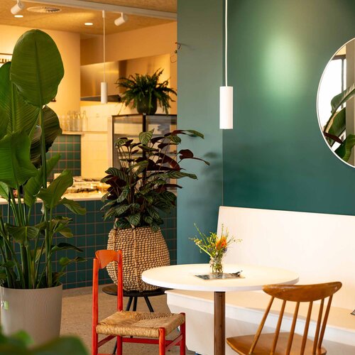 Das Selbstbedienungskonzept sorgt für Flexibilität, ergänzt durch einen angenehmen Tischservice für ausgewählte Angebote, der den Aufenthalt noch komfortabler macht.