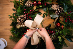 - Es werden fertige Adventkranz-Rohlinge geschmückt.