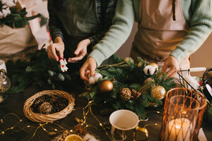 - Es werden fertige Adventkranz-Rohlinge geschmückt.