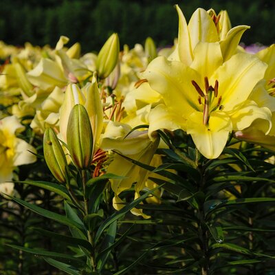 Die Blumenzwiebel Baumlilie Honeymoon ist eine beeindruckende Gartenlilie, die mit ihrer eleganten Wuchshöhe und ihren leuchtenden, großen Blüten begeistert. Mit ihrer Blütenfarbe von Zitronengelb bis Hellgelb bringt sie frische, freundliche Farbakzente in Beete, Rabatten und Pflanzkübel. Dank ihrer robusten Eigenschaften eignet sich diese Baumlilie sowohl für erfahrene Gartenliebhaber als auch für Einsteiger.