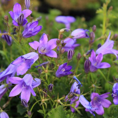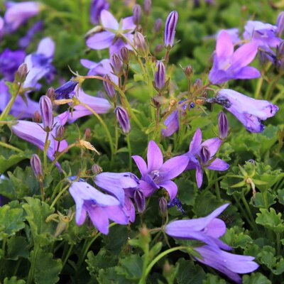 Die Polster-Glockenblume 'Birch' überzeugt durch ihre schönen violetten Blüten, die besonders in Steingärten einen fantastischen Anblick bieten. Auch nach der Blütezeit ist sie ein wunderbarer Farbtupfer zwischen dem Grau und begeistert mit ihrem grünen Blattwerk. Die (bot.) Campanula portenschlagiana 'Birch' breitet sich teppichartig aus und schmückt rasch größere Areale mit Blatt und Blüte. Von Juni bis August zeigt sich die Dalmatiner Polster-Glockenblume 'Birch' von ihrer schönsten Seite. Die ansehnliche Staude entfaltet viele kleine Blüten, die in einem herrlichen Violett erblühen. Auf diese Weise fällt sie auch bei einer Wuchshöhe von 10 bis 15 Zentimetern sofort auf und zieht das Interesse jedes Betrachters auf sich. Besonders für den Steingarten ist die Staude gut geeignet. Zusammen mit Ziergräsern oder anderen Stauden kreiert der Gärtner ein traumhaftes Bild in seinem Garten.