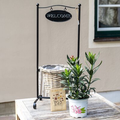 Ein Hauch Mittelmeer zum Muttertag: Das Geschenkset „Mediterrane Grüße für Mama" vereint einen rosenroten Oleander (Nerium oleander) mit einem dekorativen Topf „Welcome" und einer einsäabaren Bio-Grußkarte „Blumige Post" – ein aufmerksamkeitsstarkes Geschenk für alle Mamas, die ihren Balkon oder ihre Terrasse lieben.