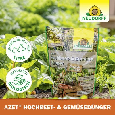 Der Azet Hochbeet- & GemüseDünger ist BIOlogische Vollwertkost für alle Gemüsearten und Kräuter. Der organische Dünger hat einen NPK-Wert von 7-3-10 und ist unbedenklich für Mensch und Tier. Er versorgt die Pflanzen mit sofort verfügbaren Inhaltsstoffen und bietet bis zu 100 Tage zuverlässige Langzeitwirkung. Azet Hochbeet- & GemüseDünger liefert viel natürliches Kalium für mehr Geschmack und reiche Ernte, erhöht die Widerstandsfähigkeit gegen Trockenheit, Krankheit und andere Stressfaktoren und ist optimal geeignet für Freiland, Hochbeet und Pflanzgefäße.