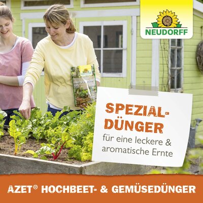 Das Besondere an allen Neudorffs Azet-Düngern sind zugesetzte Mykorrhiza-Pilze, die eine Symbiose mit den Pflanzenwurzeln eingehen, dadurch das Wurzelwachstum verbessern, die Widerstandskraft erhöhen sowie die Blühkraft und den Ernteertrag fördern. Mikroorganismen wandeln Nährstoffe um und verbessern damit die Düngerwirkung, versorgen die Pflanze kontinuierlich und bedarfsgerecht und fördern Pflanzengesundheit und Bodenfruchtbarkeit.