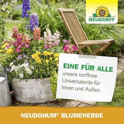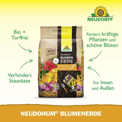 NeudoHum BlumenErde bietet das, was die Pflanze braucht! Das torffreie Pflanzsubstrat sorgt für kräftige Pflanzen und schöne Blüten. Die natürliche Nährstoff- und Wasserspeicherfähigkeit sichert kräftigen Wuchs und optimiert den Wasser- und Lufthaushalt im Substrat durch die einzigartige Kombination nachwachsender Rohstoffe. Die schnell abtrocknende Oberfläche bietet Schutz vor Trauermücken-, Algen- und Pilzbefall.