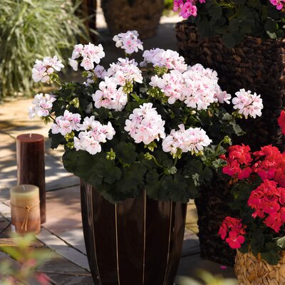 Die Pelargonie White Splash überzeugt durch ihre zweifarbige Blütenfarbe in Weiß-Rosa, die jedes Pflanzarrangement optisch aufwertet. Die hellen Blüten bringen Leichtigkeit in sommerliche Pflanzungen und lassen sich hervorragend mit anderen Sommerblumen kombinieren. Durch ihre langanhaltende Blüte sorgt die Pflanze über viele Wochen hinweg für ein gepflegtes und farbenfrohes Erscheinungsbild.