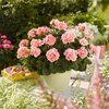 Die stehende Pelargonie – im Volksmund oft Geranie genannt – ist der Sommerklassiker auf österreichischen Balkonen und Terrassen. 'Salmon Queen' trägt von Mai bis September dichte, runde Blütendolden in warmem Lachs – einem zarten Ton zwischen Rosa und Orange, der sich elegant mit vielen anderen Sommerblumen kombinieren lässt. Aufrecht und kompakt wachsend bis 50 cm, eignet sie sich ideal für Balkonkisterl, Terrassenkübel und sonnige Beete.